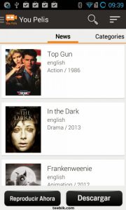 Dentro de la gama de aplicaciones para descargar películas gratis, You Pelis es una excelente opción porque facilita mucho la navegación para descubrir la película que te interese y además brinda información útil como sinopsis y actores que en muchos casos es un factor decisivo para ver o no una película.